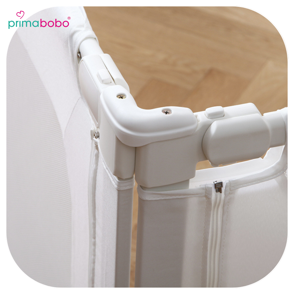 Wierzchnia część barierki jest pokryta specjalnym, przyjaznym dla dziecka materiałem, który można w łatwy sposób czyścić. Materiał nadaje się do mieszkań ze zwierzętami domowymi.
