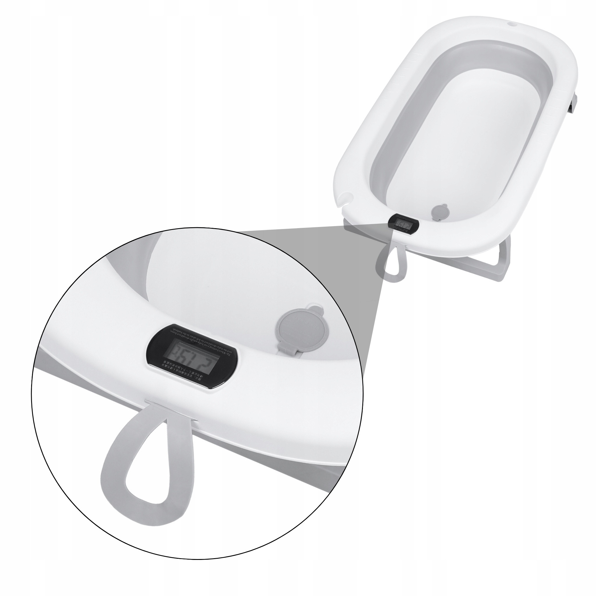 PRIMABOBO Wanienka składana MILO dla dziecka z Termometrem Fotelik Szara Cechy dodatkowe ze stojakiem z korkiem z odpływem z termometrem